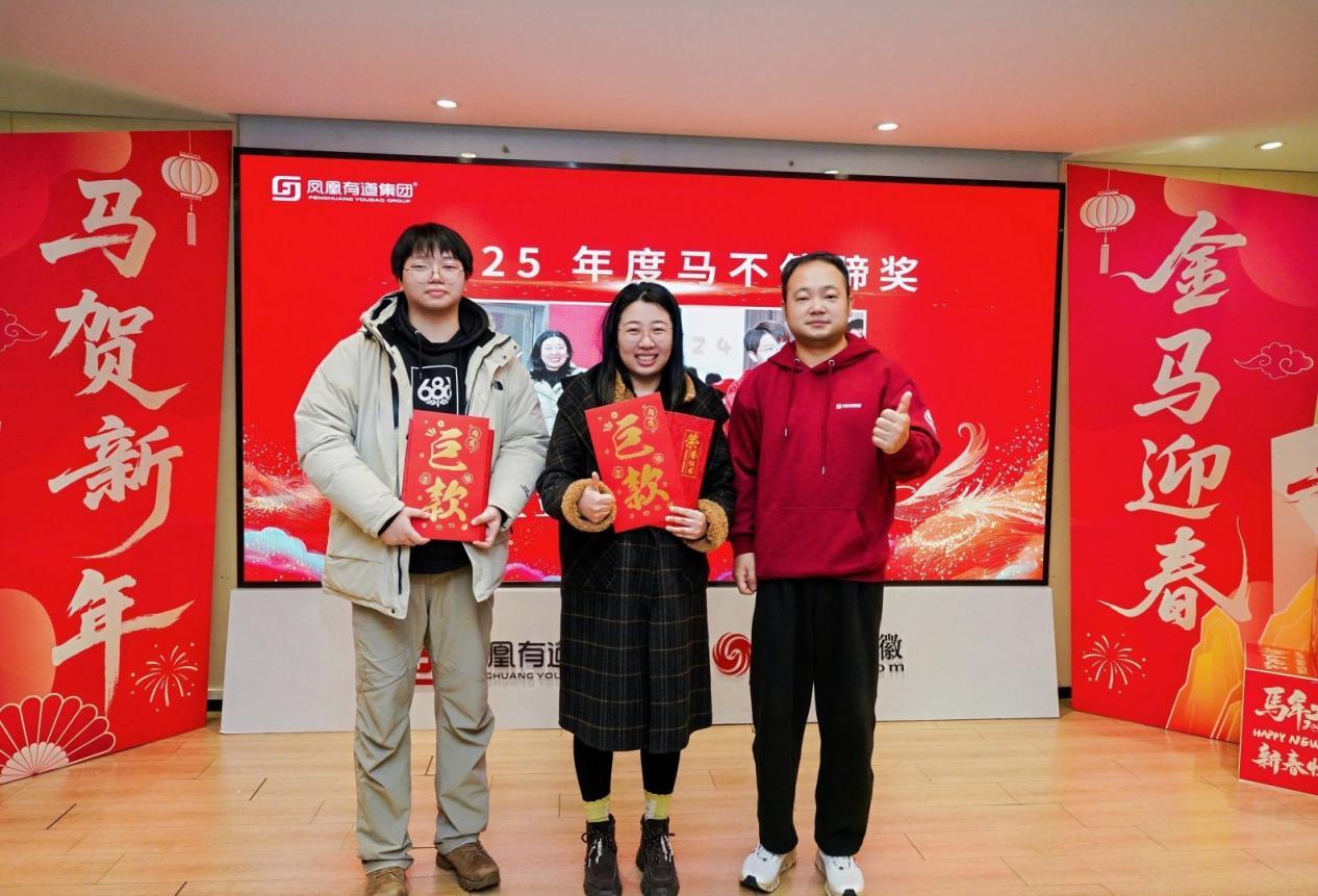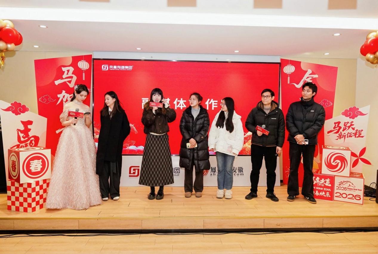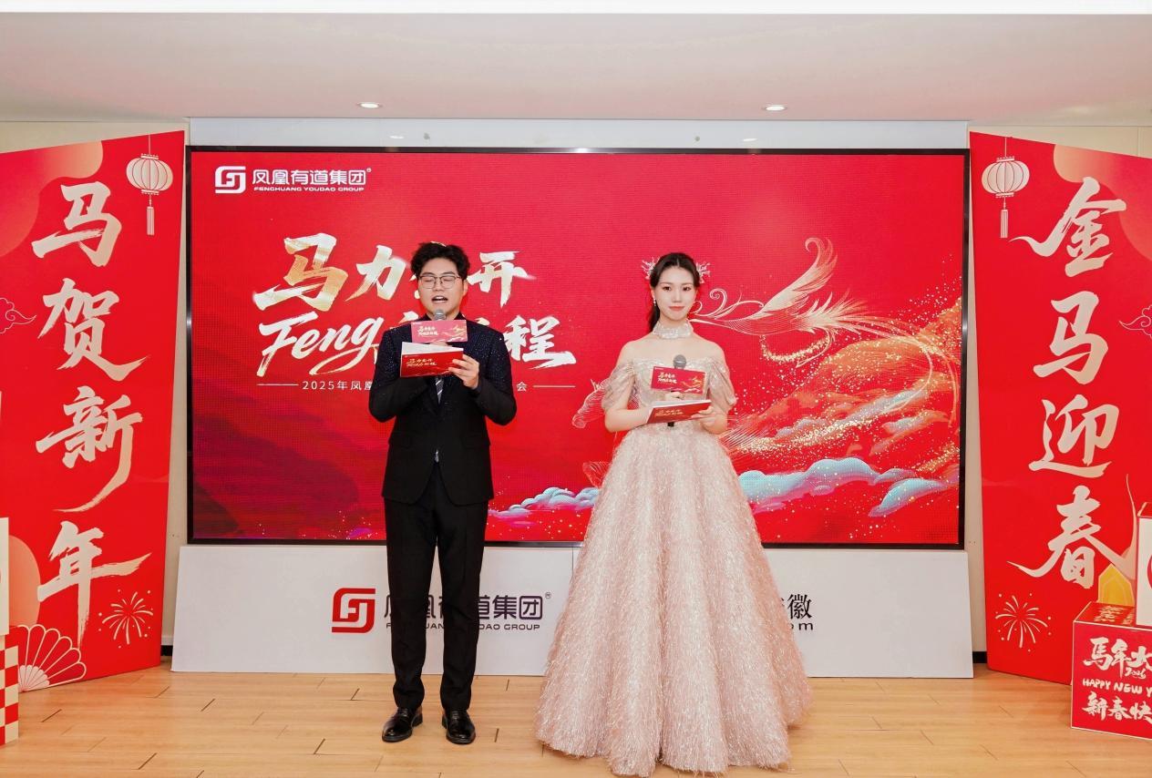 2026年2月12日,岁末添喜,寒意渐融,安徽凤凰有道集团内暖意涌动、喜乐盈堂。一场以“马力全开,Feng启新程”为主题的2025年凤凰有道集团年会暨表彰大会如期启幕,集团上下一群满怀热忱与朝气的年轻人欢聚一堂,共忆2025奋斗征程、共启2026骏业新篇,共赴一场好玩又好运的年度盛会。