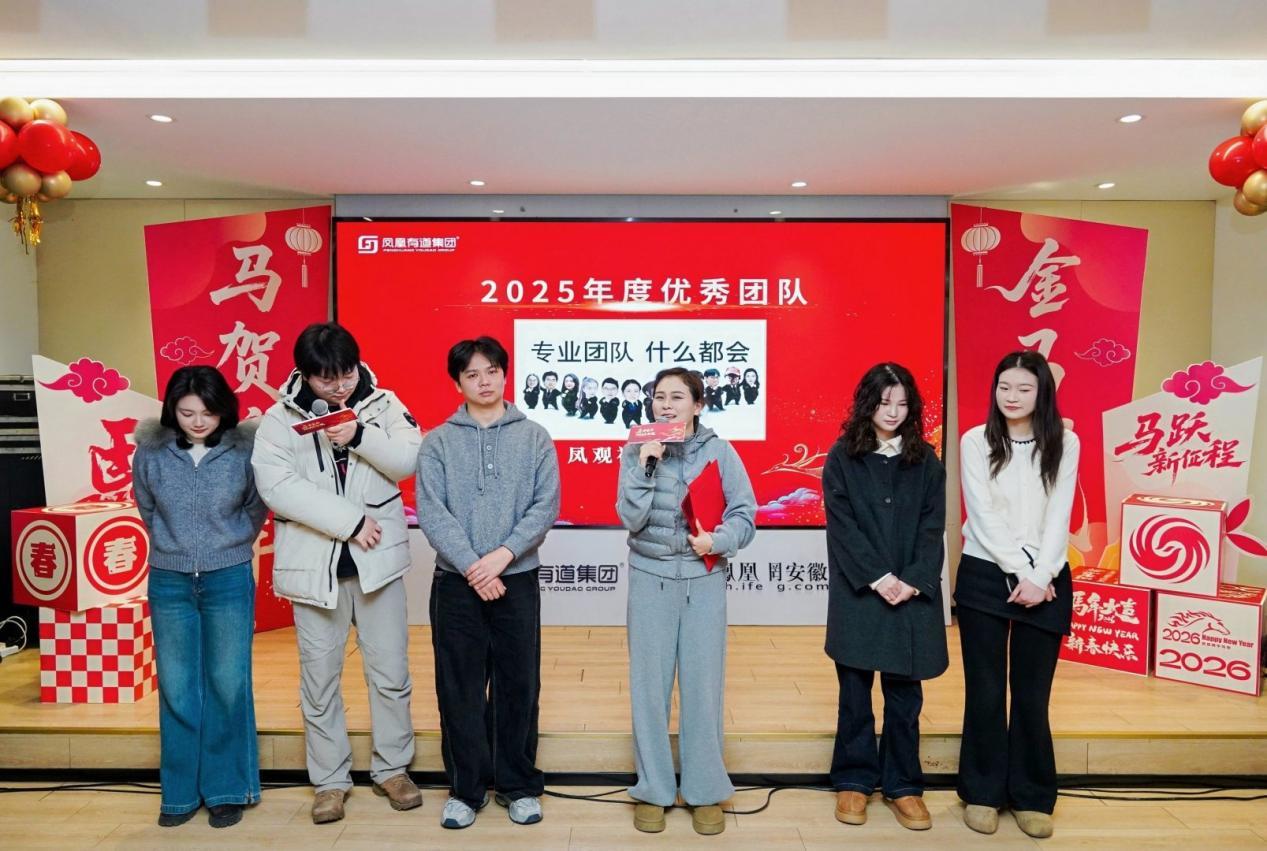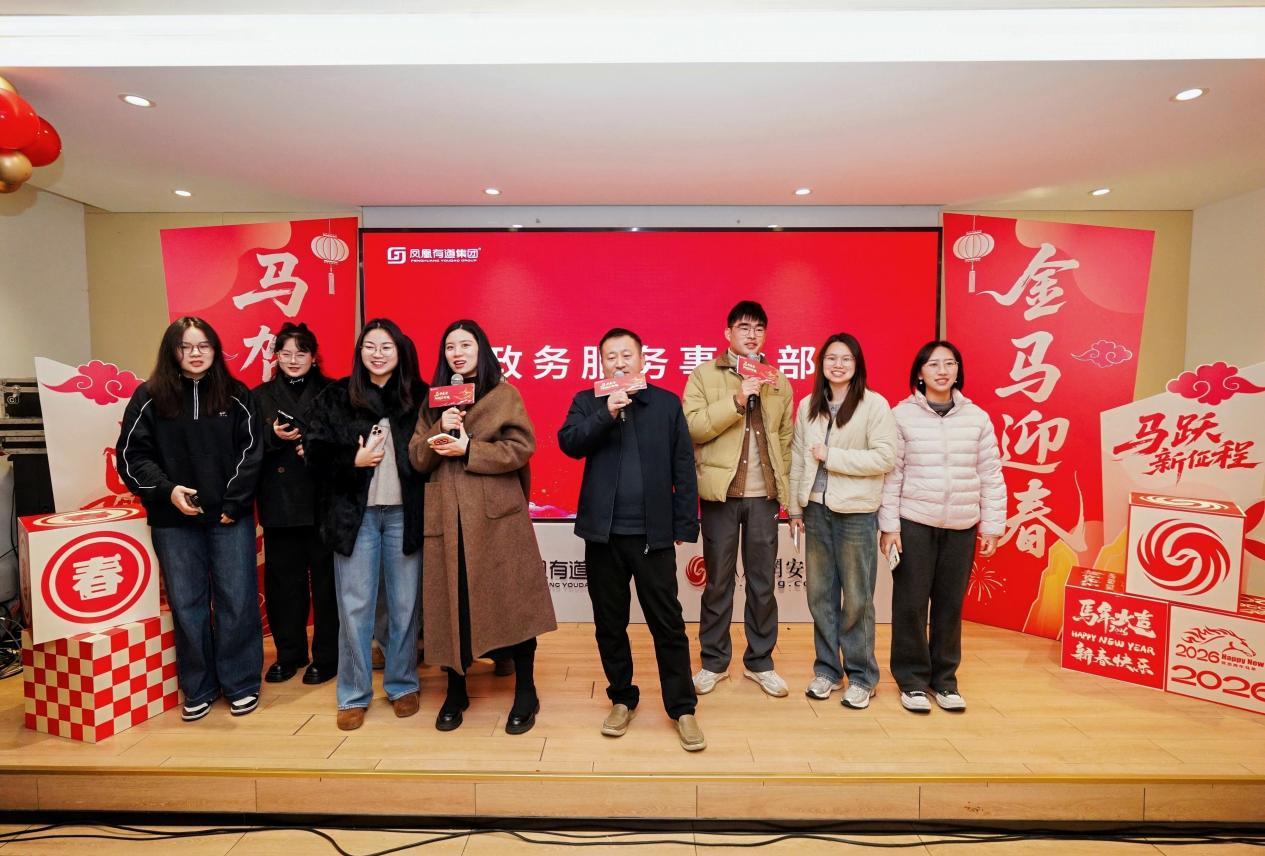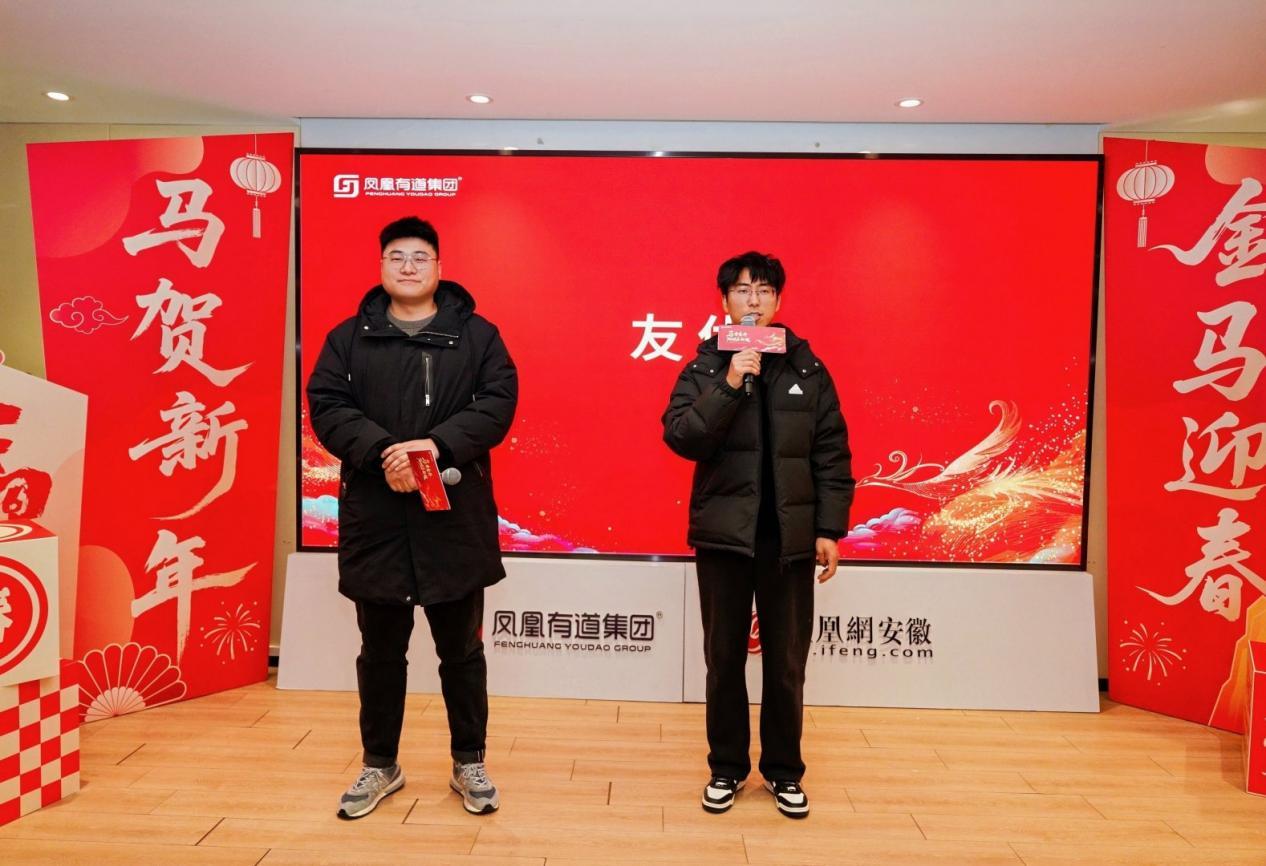 2026年2月12日,岁末添喜,寒意渐融,安徽凤凰有道集团内暖意涌动、喜乐盈堂。一场以“马力全开,Feng启新程”为主题的2025年凤凰有道集团年会暨表彰大会如期启幕,集团上下一群满怀热忱与朝气的年轻人欢聚一堂,共忆2025奋斗征程、共启2026骏业新篇,共赴一场好玩又好运的年度盛会。