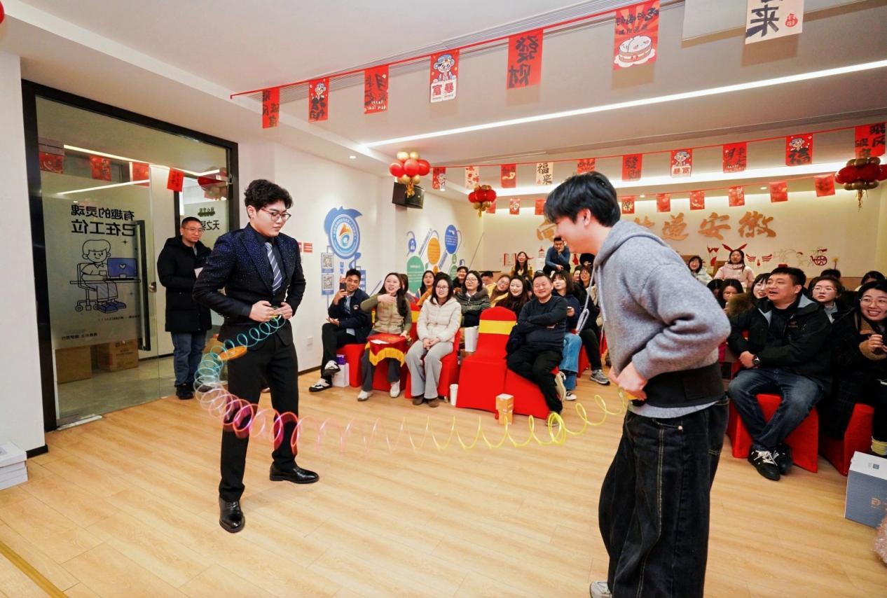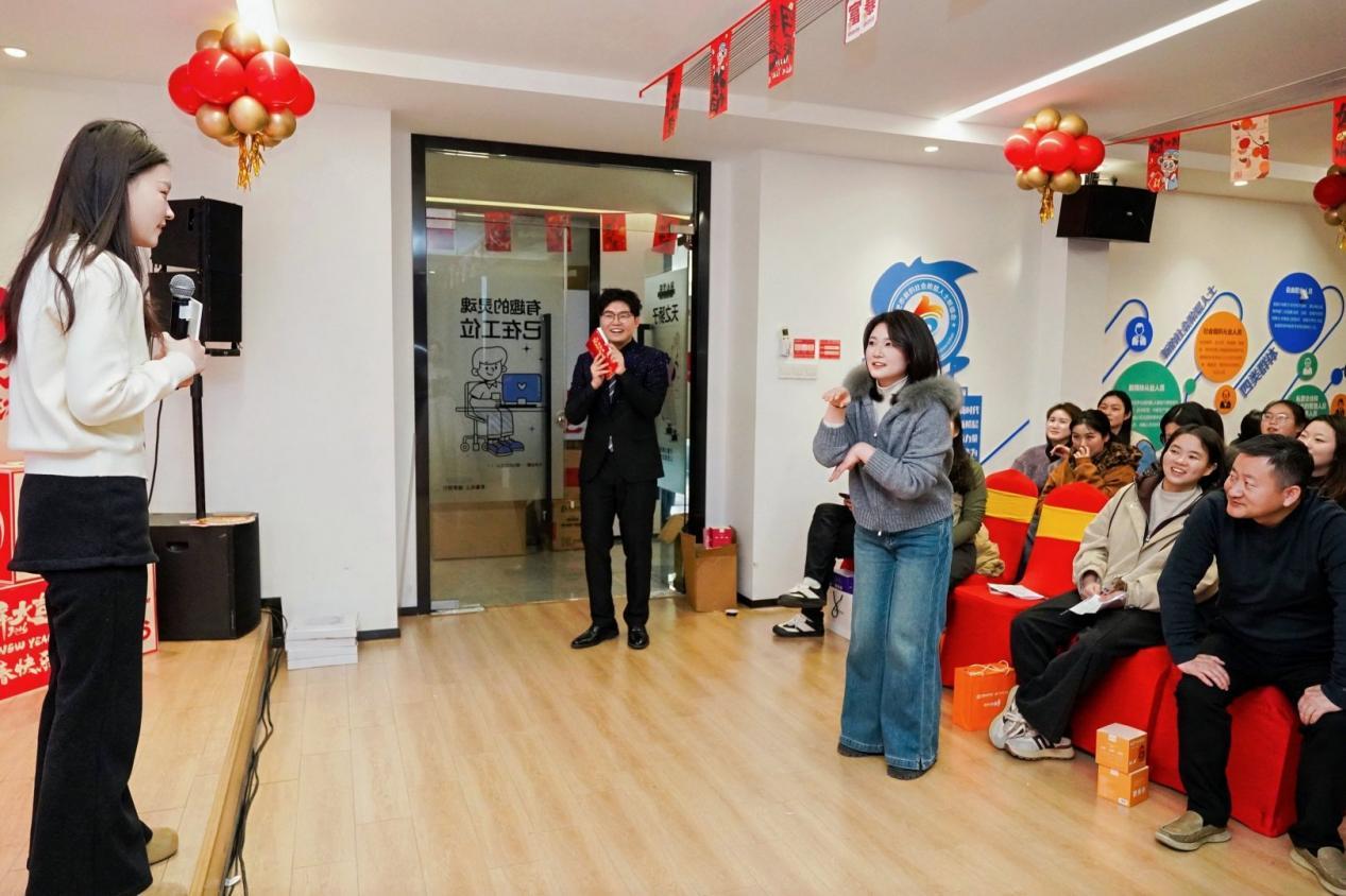 年会还设置了丰富多样的互动游戏环节。“抢歌王”“光盘拔河”“马上有钱”等趣味游戏,让小伙伴们在轻松竞技中增进情谊,全场氛围热烈。